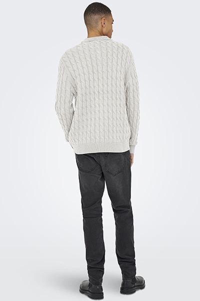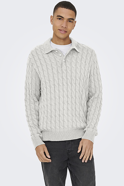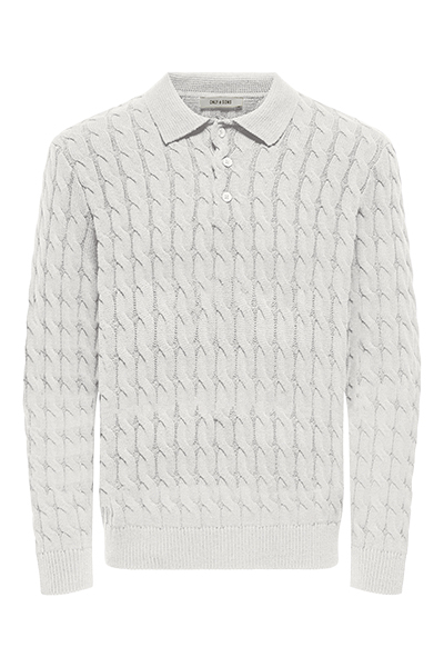 Only & Sons Kicker Cabel Polo Knit Antique White