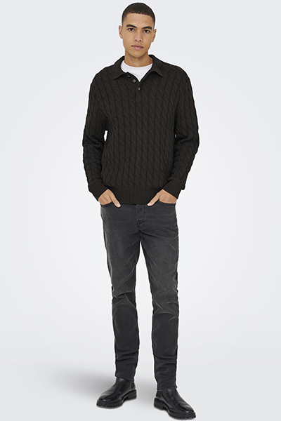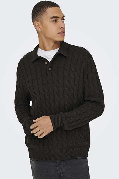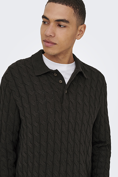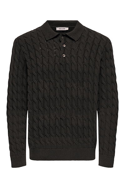 Only & Sons Kicker Cabel Polo Knit Demitasse