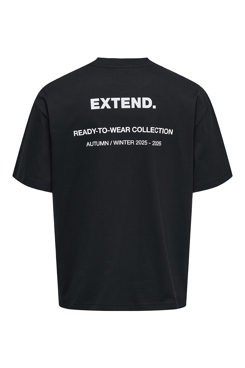 - T-shirten har tekstprint på ryggen samt et lille påsyet mærke i siden