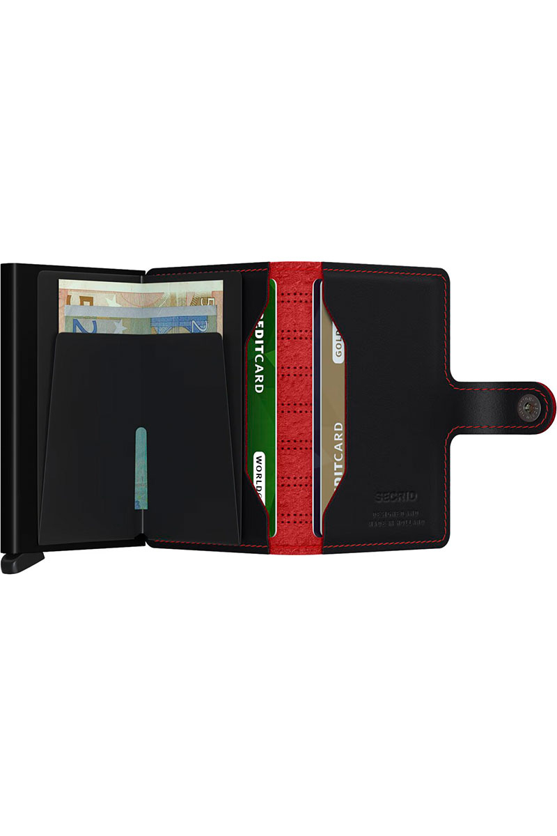 - Der er plads til 4 prægede kort eller 6 flade kort, 4 ekstra kort, pengesedler samt visitkort