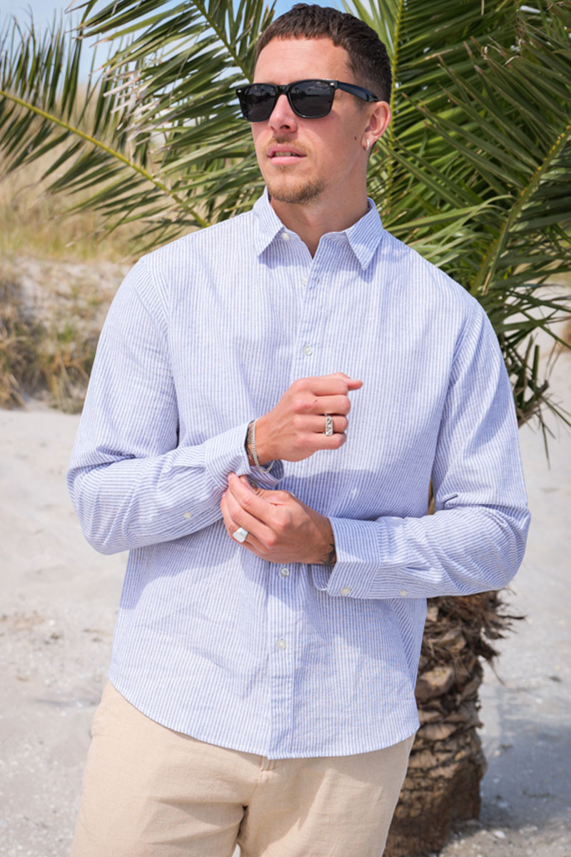 Tilbage til oversigten 2trendy > Tøj > Skjorter > Selected Slim Sun Linen Shirt LS Bright White Thin Stripe Leveringstid: 1-2 dage