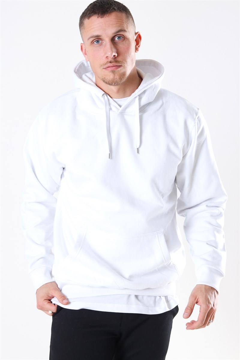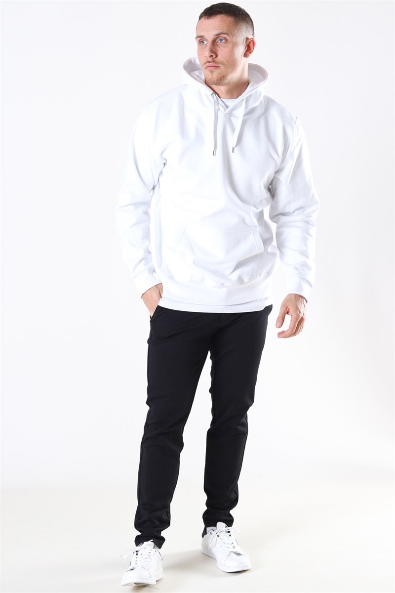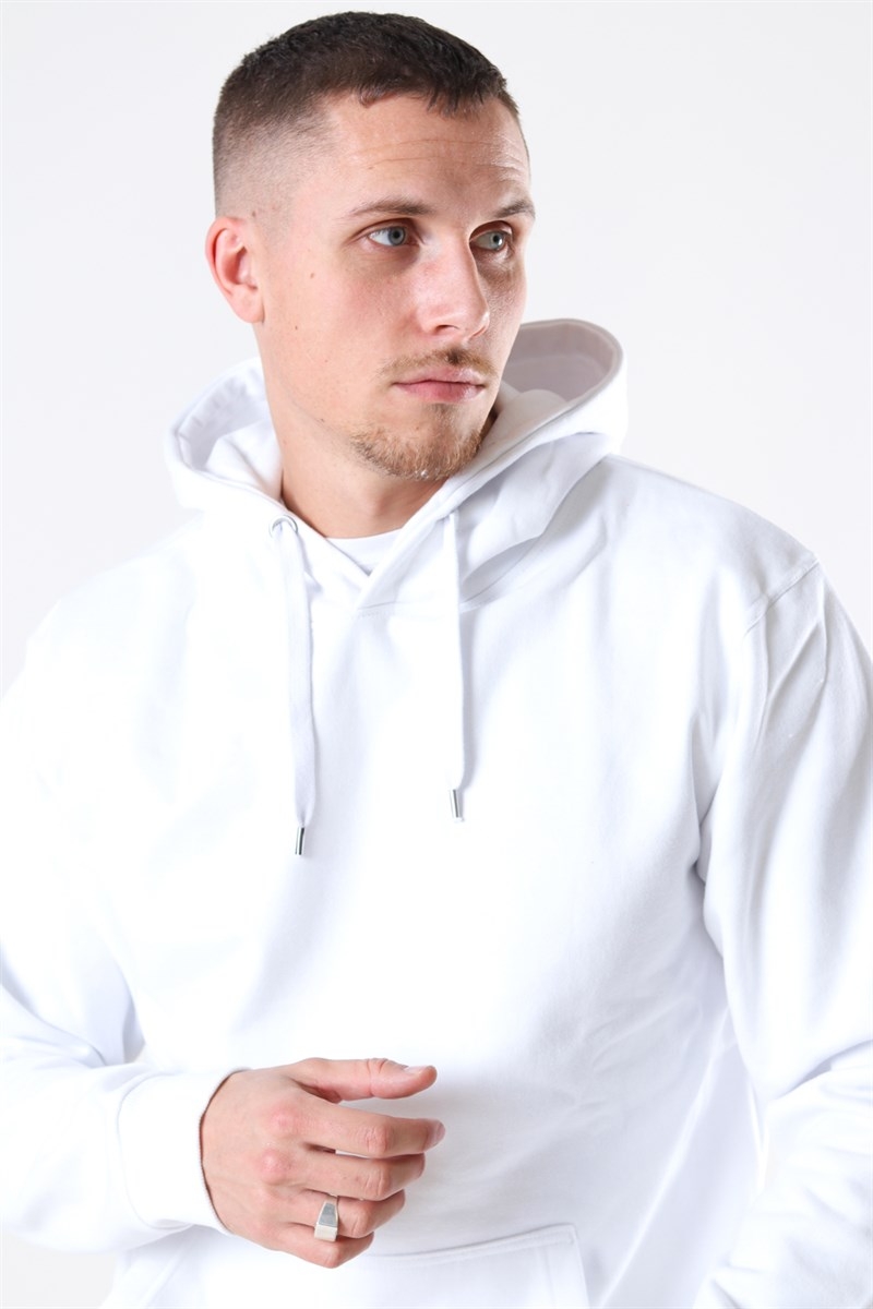 Smart hoody fra Basic Brand i farven hvid. Hættetrøjen har en brystlomme, og hætten kan snøres til med snoren. Der er en matchende bred hvid elastik ribkant i livet og ved ærmerne. Kvalitet 65% Bomuld og 35% Polyester.