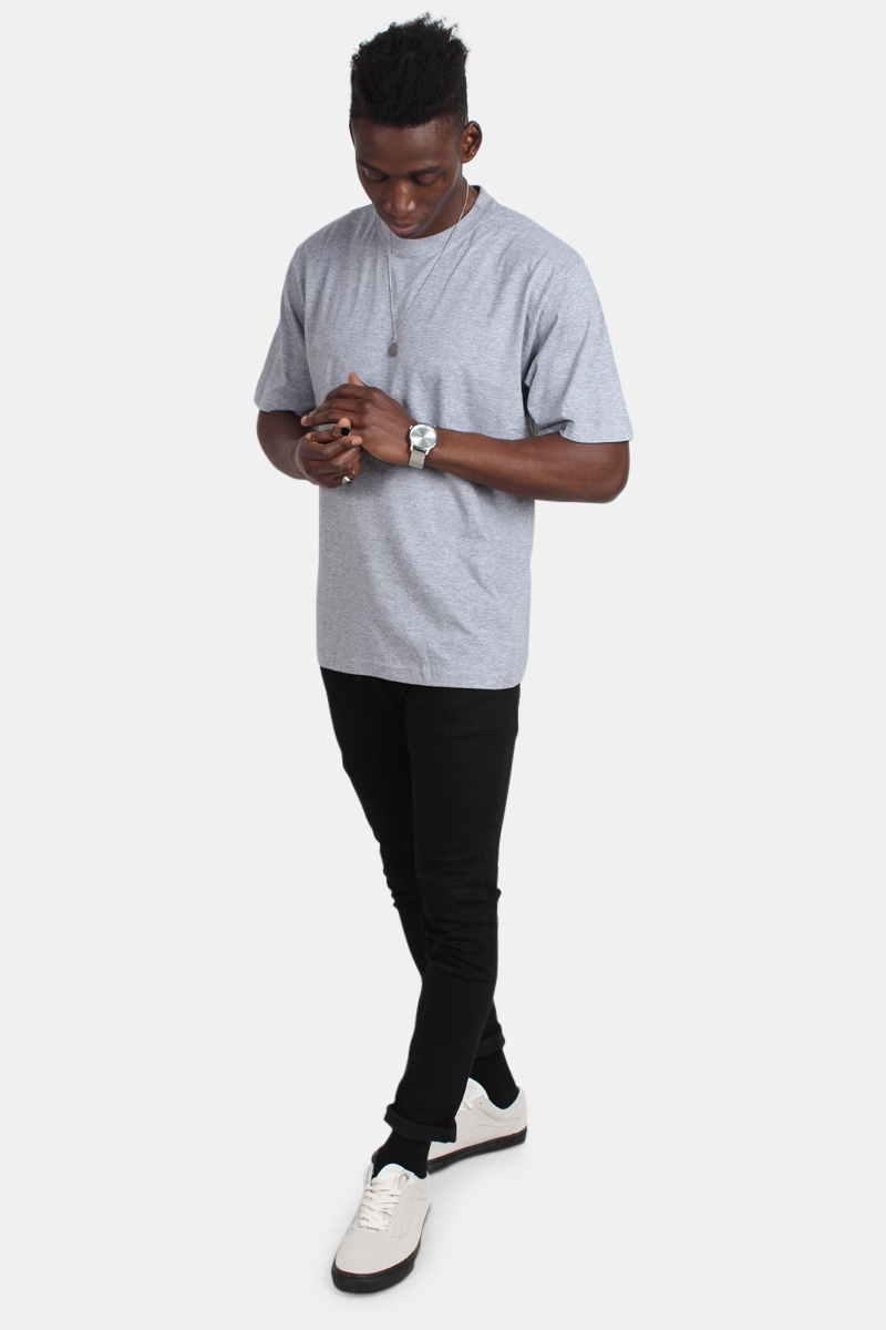 Flot basic tee i farven Oxford Grey. Stoffet er meleret. Kommer med ribkant ved halsen, samt en rund halsudskæring. Der er mulighed for at brætte ærmerne op. Kvalitet: 100% bomuld.