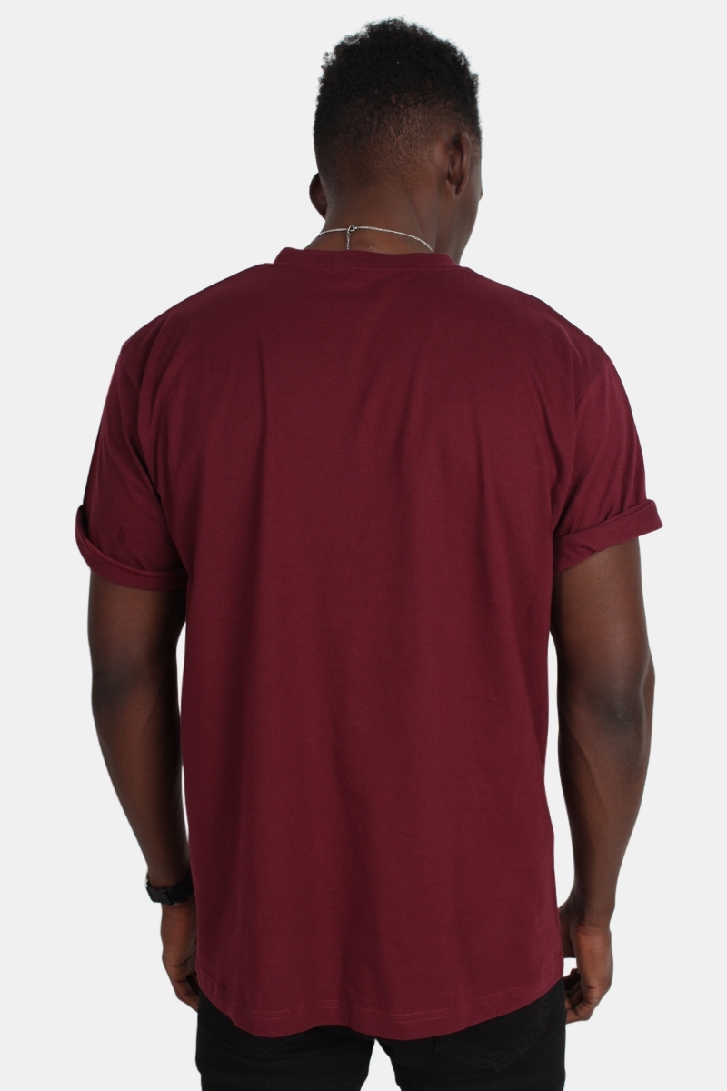 Smart basic tee i farven burgundy. Ved t-shirten er der mulighed for at opsmøg af ærmerne. Kommer med en halsudskæring som er rund med en bred ribkant. Kvalitet: 100% bomuld.