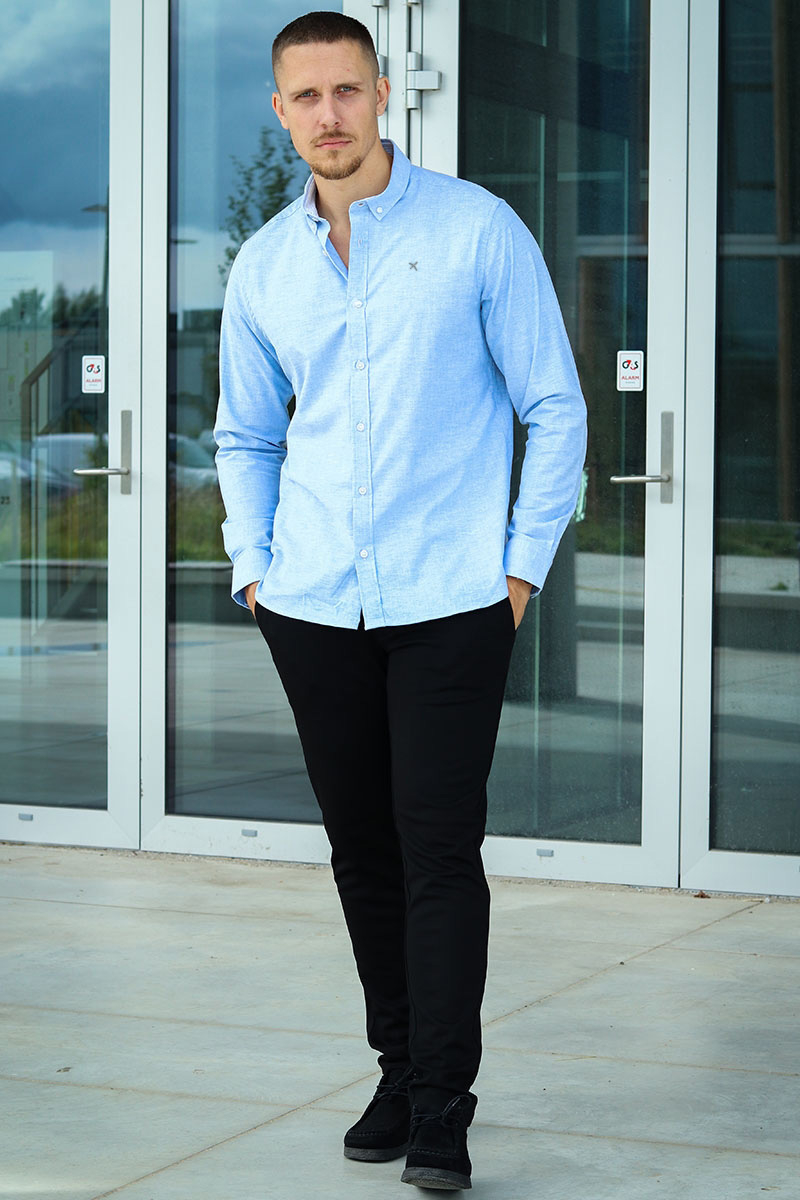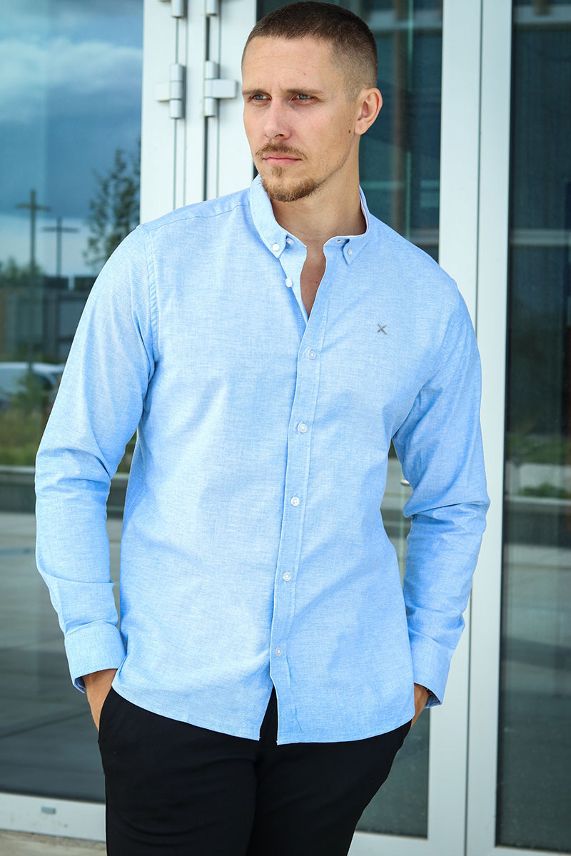 Clean Cut Copenhagen Oxford Stretch Plain L/S Light Blue