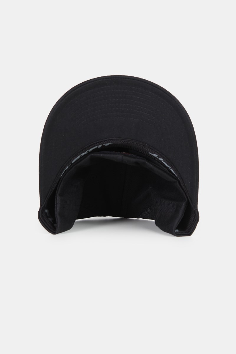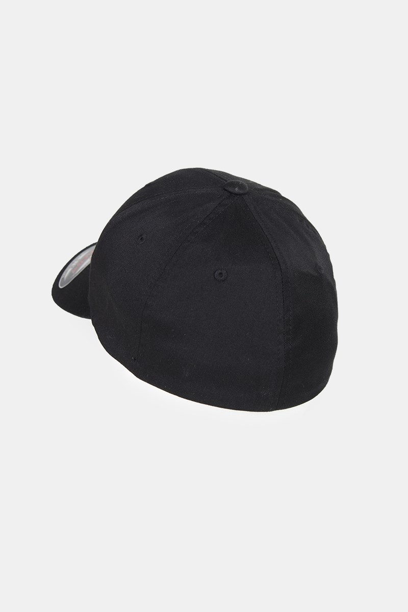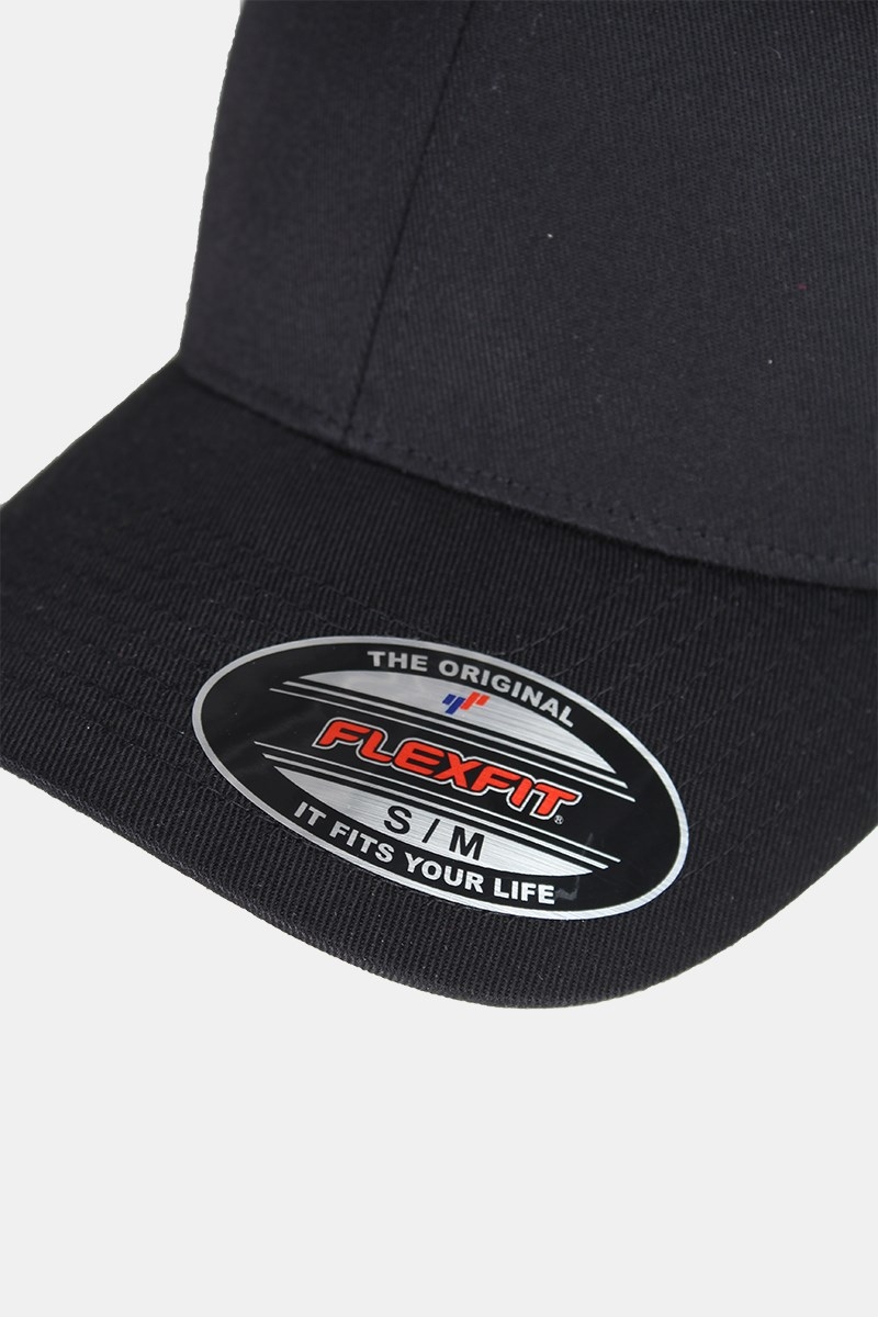 Flexfit cap i sort. En klassisk cap med stretch, seks lufthuller og detalje knap i toppen. Cappen har en buet skygge. Kvalitet: 63% Polyester, 34% Bomuld, 3% Elastan