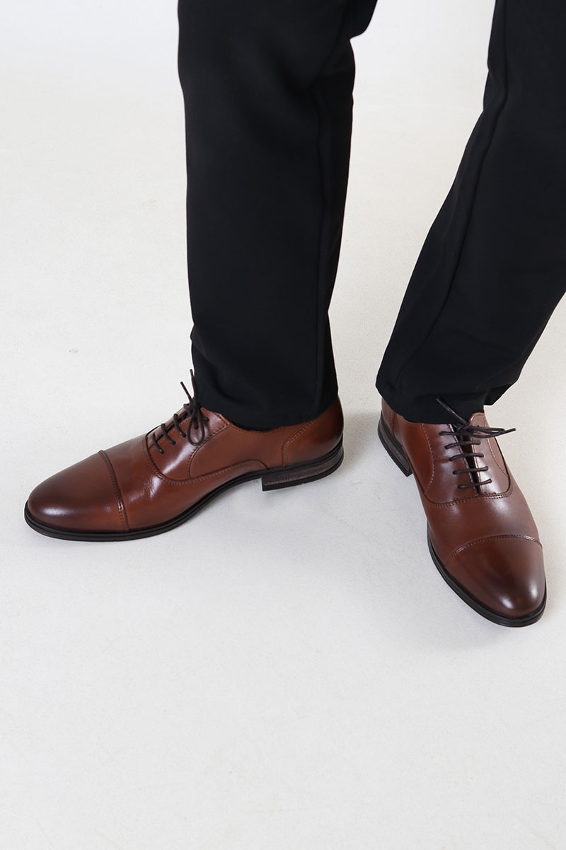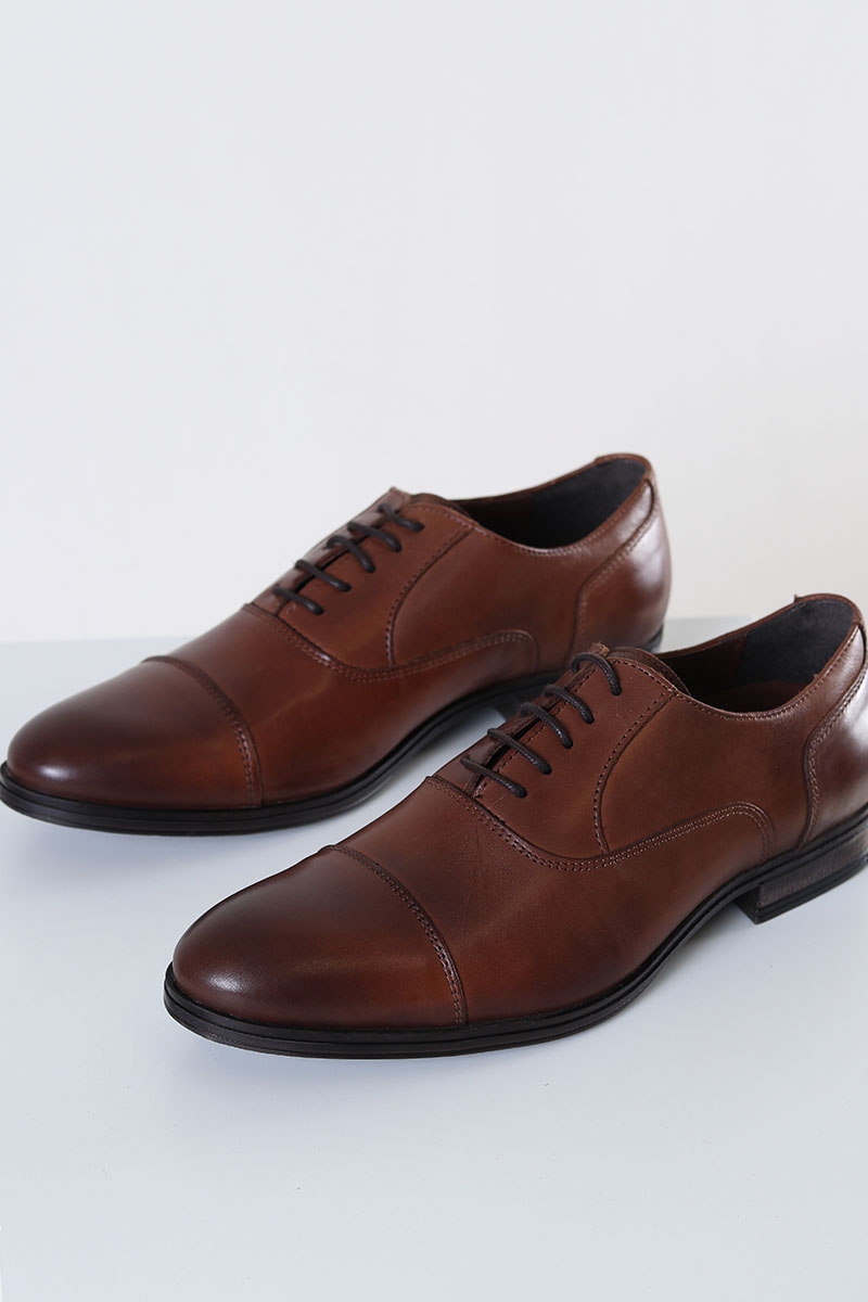 Jack & Jones elegante herresko med flot cognac farvet overflade i læder. Komme med rund snude, runde snørebånd og en stablet hæl. Kvalitet: Øvre: 100% Okselæder. Foring: 100% textil. Sål: 100% syntetisk.
