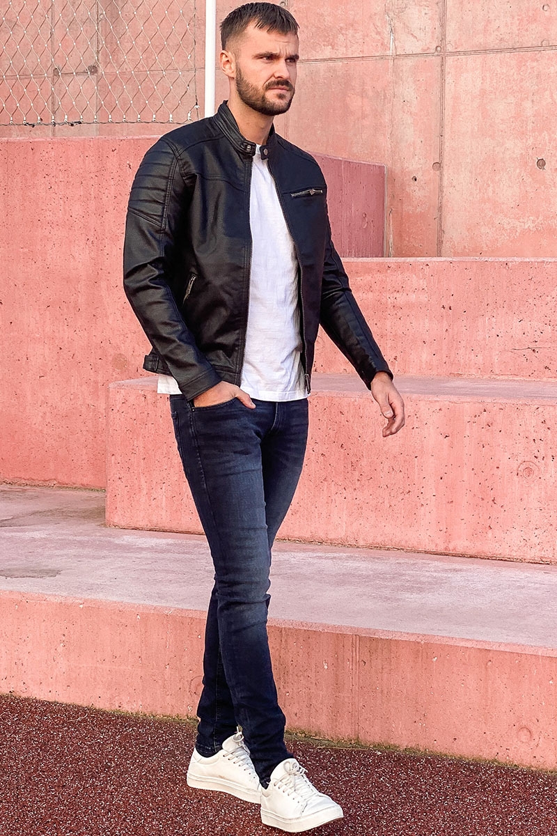 Modellen er 190 cm høj, vejer 85 kg, og bruger produktet i størrelse 32/34
