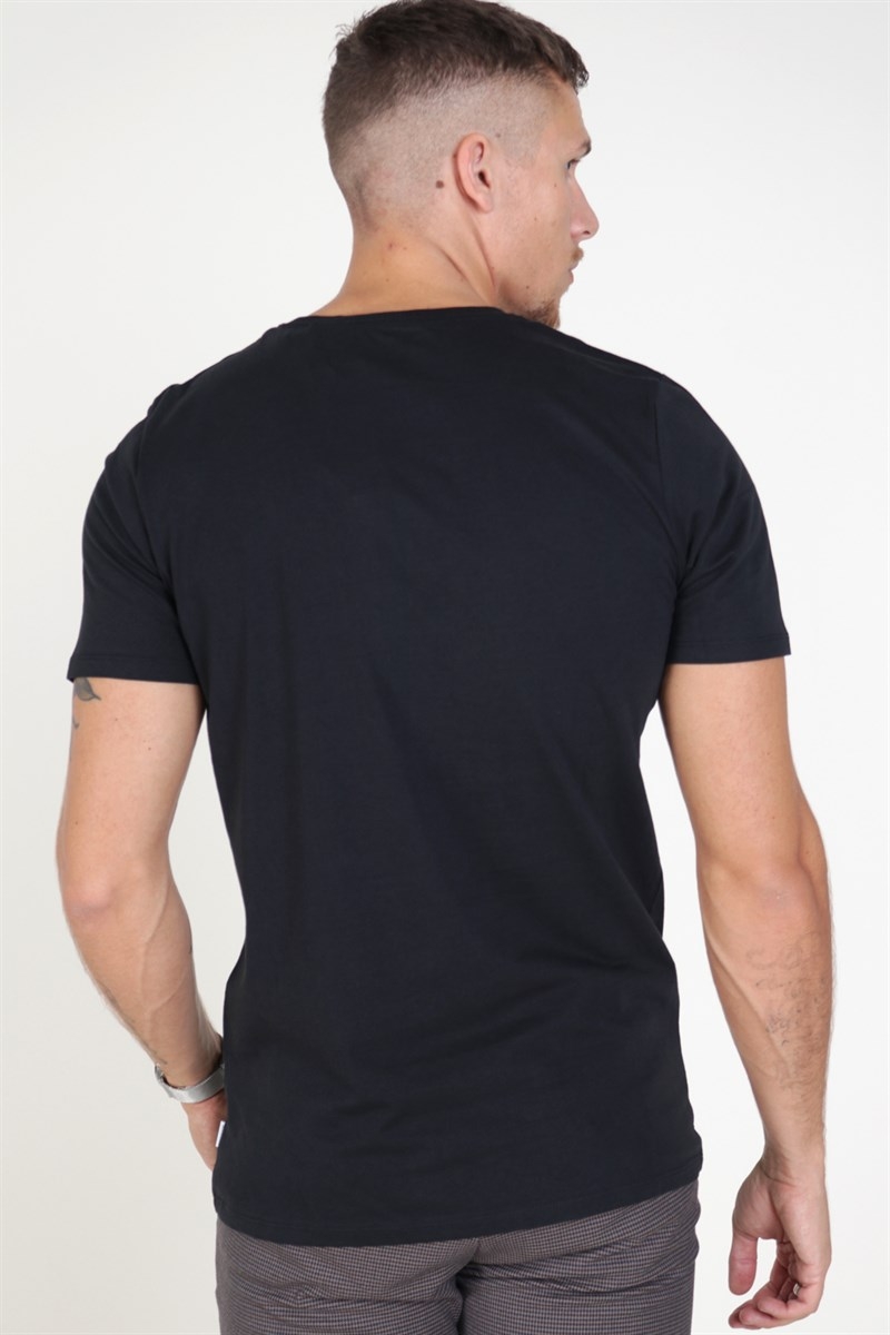Modellen er 182 cm høj, vejer 80 kg, og bruger produktet i størrelse L