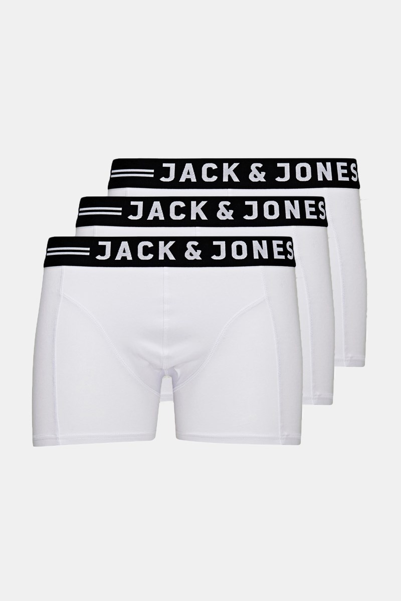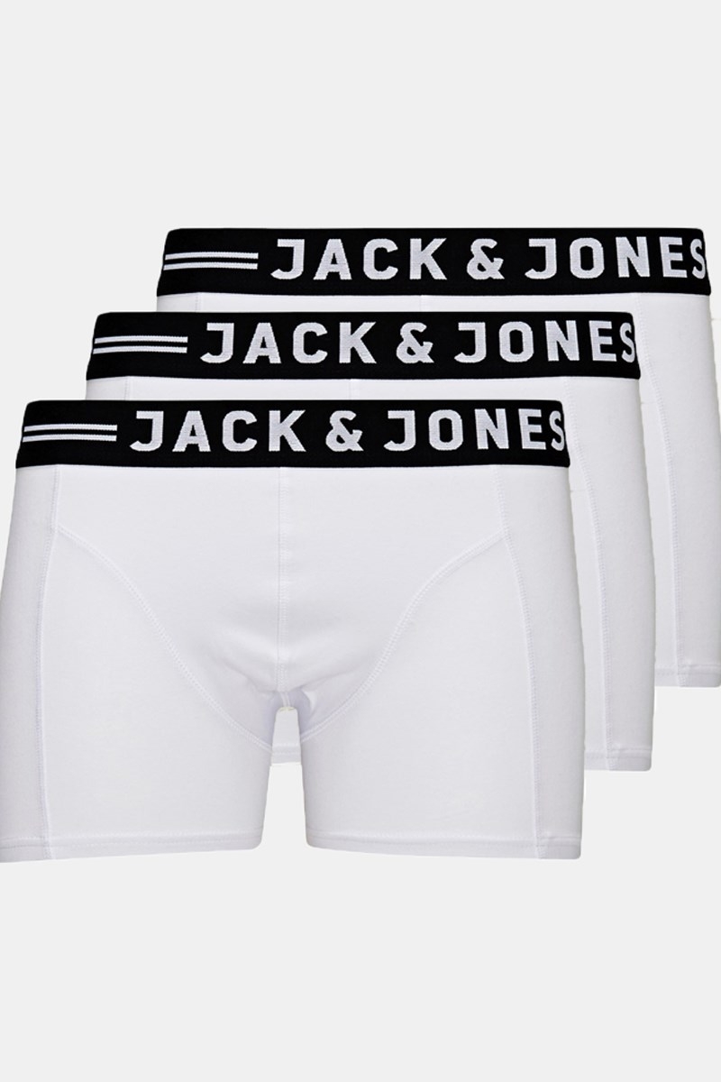Jack & Jones 3-pack boxerhorts i hvid med sort elastik kant og hvidt logo. Comfort fit. Maximum støtte. Fleksibel med stay in form. Kvalitet: 95% bomuld, 5% elastan.