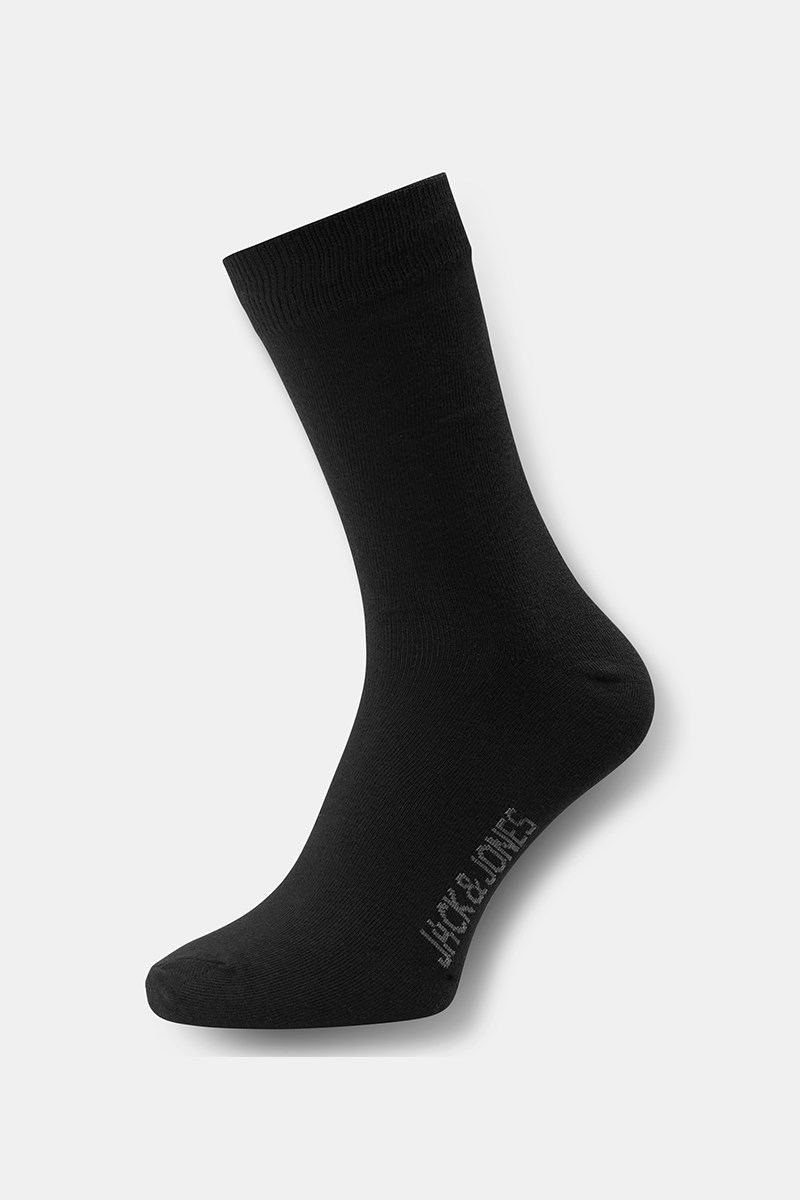 Jack & Jones 10 par strømper i et komfortabelt materiale med bred ribkant. Kommer i sort med logo under sålen. One size: 72% bomuld 26 % polyester, 2 % elastan.