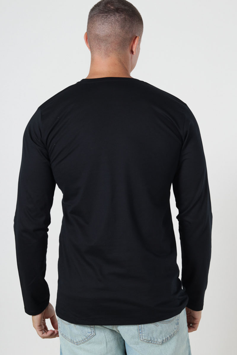 Modellen er 180 cm høj, vejer 74 kg, og bruger produktet i størrelse Large