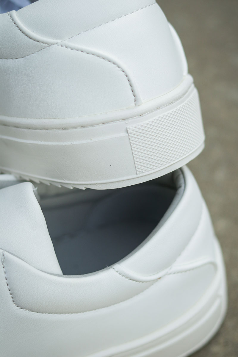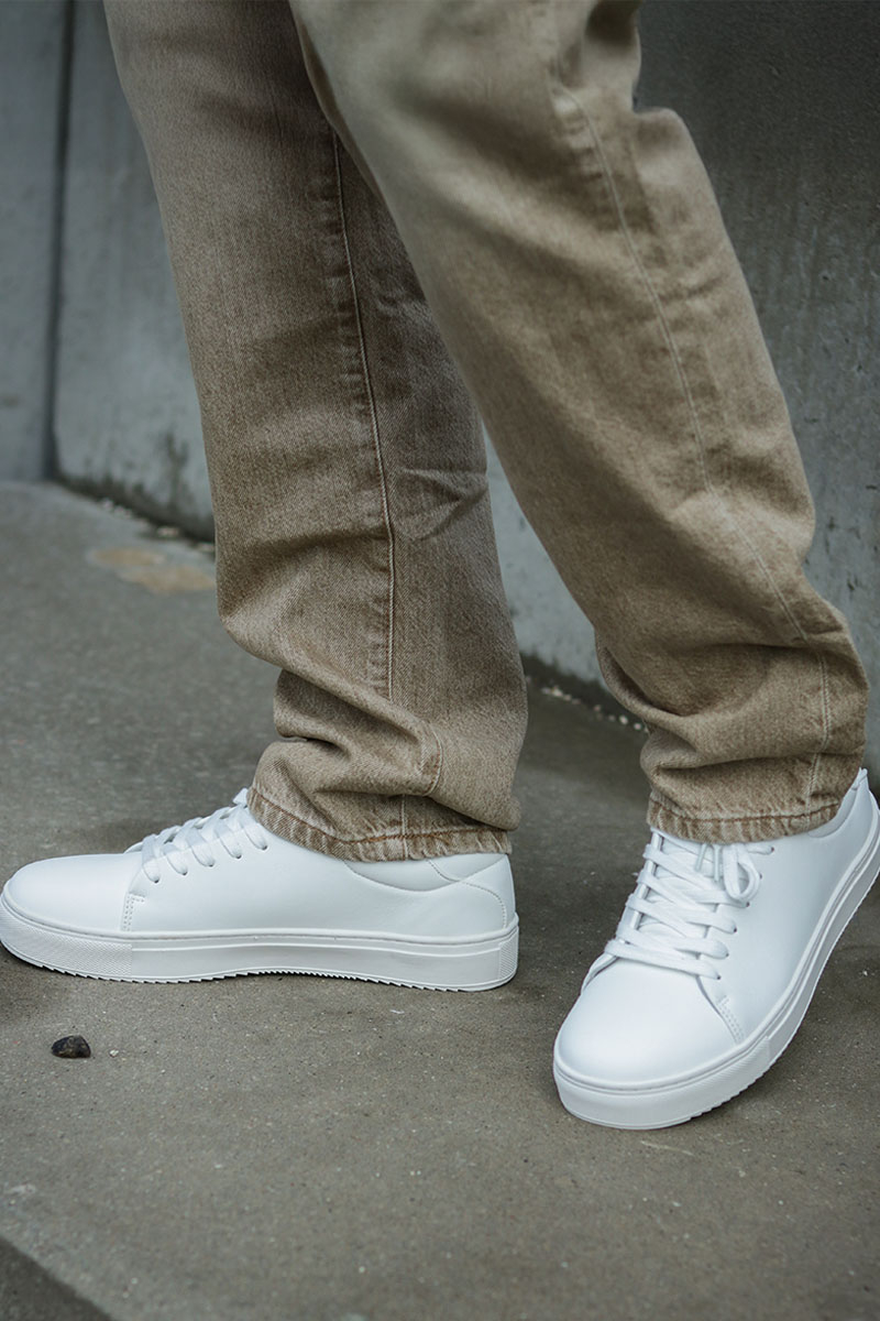 Modellen er 190 cm høj, vejer 85 kg, og bruger produktet i størrelse 43
