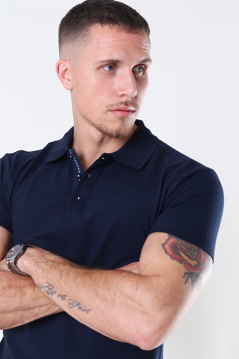 Muscle fit Polo i farven Blue Navy er lavet af 92% økologisk bomuld og 8% elastan, der gør den lækker blød og stretchy.