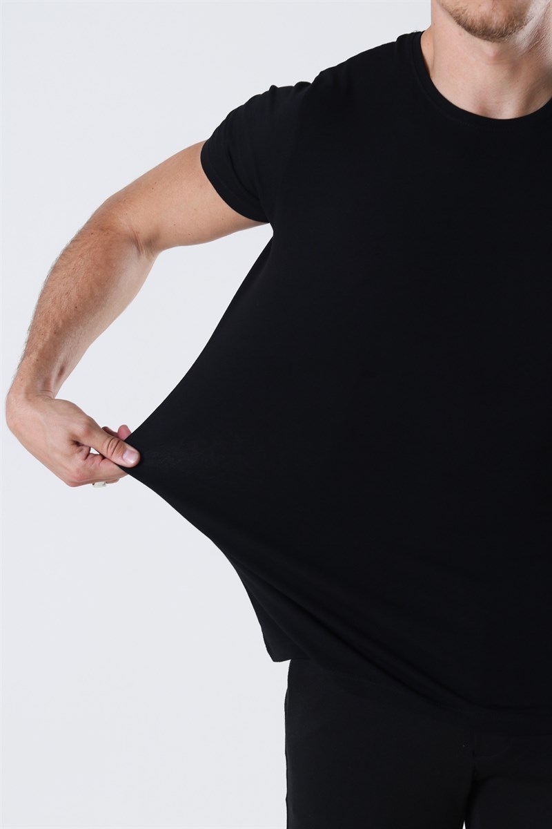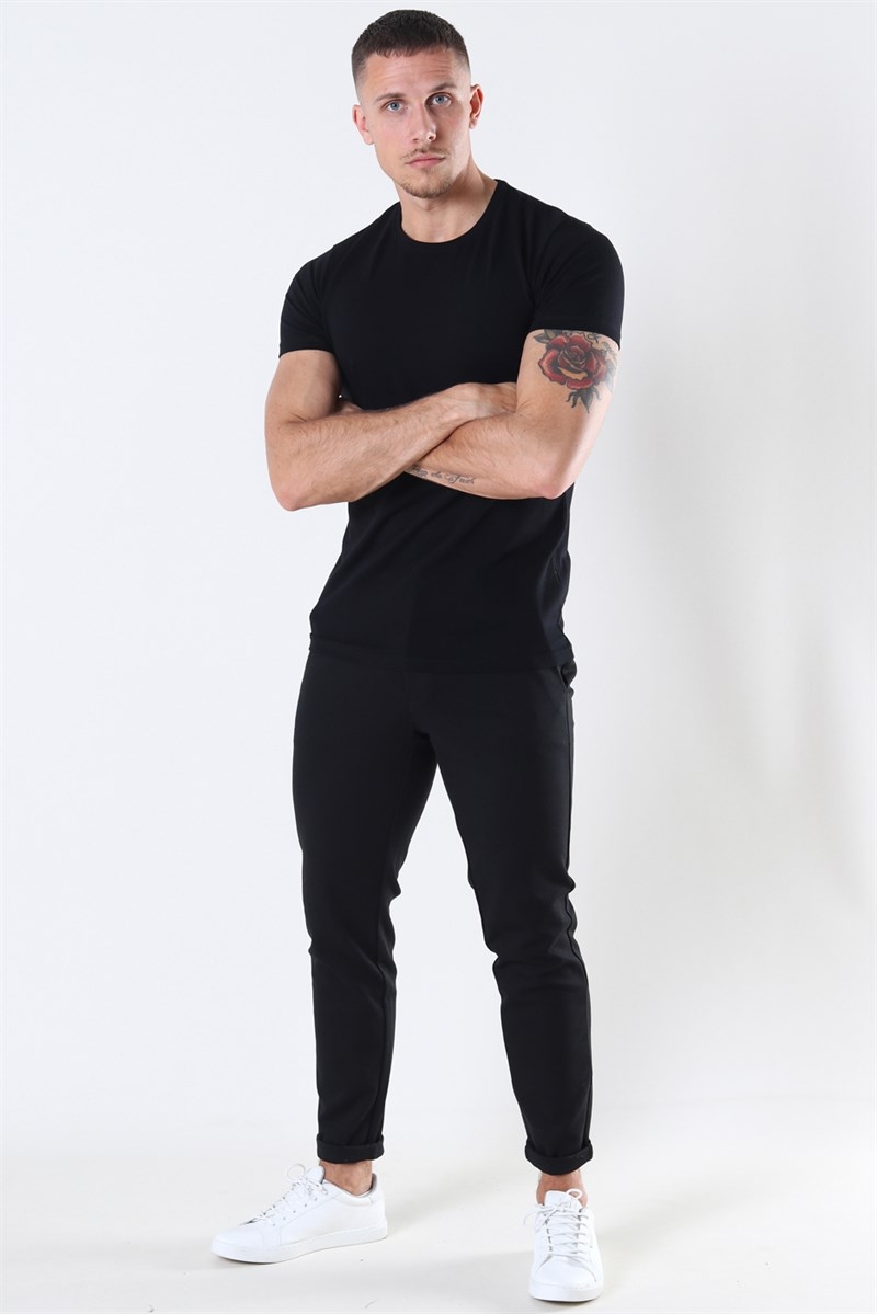 Denne Muscle fit t-shirt i farven Black har en fantastisk pasform, som er designet til at fremhæve musklerne. Den er lavet med 4-vejs stretch, hvilket giver en øget fleksibilitet og bevægelsesfrihed. T-shirten er derfor ideel til træning, da den ikke hæmmer bevægelse og samtidig fremhæver den muskulære fysik. Den kan dog også sagtens bruges til hverdagsbrug
