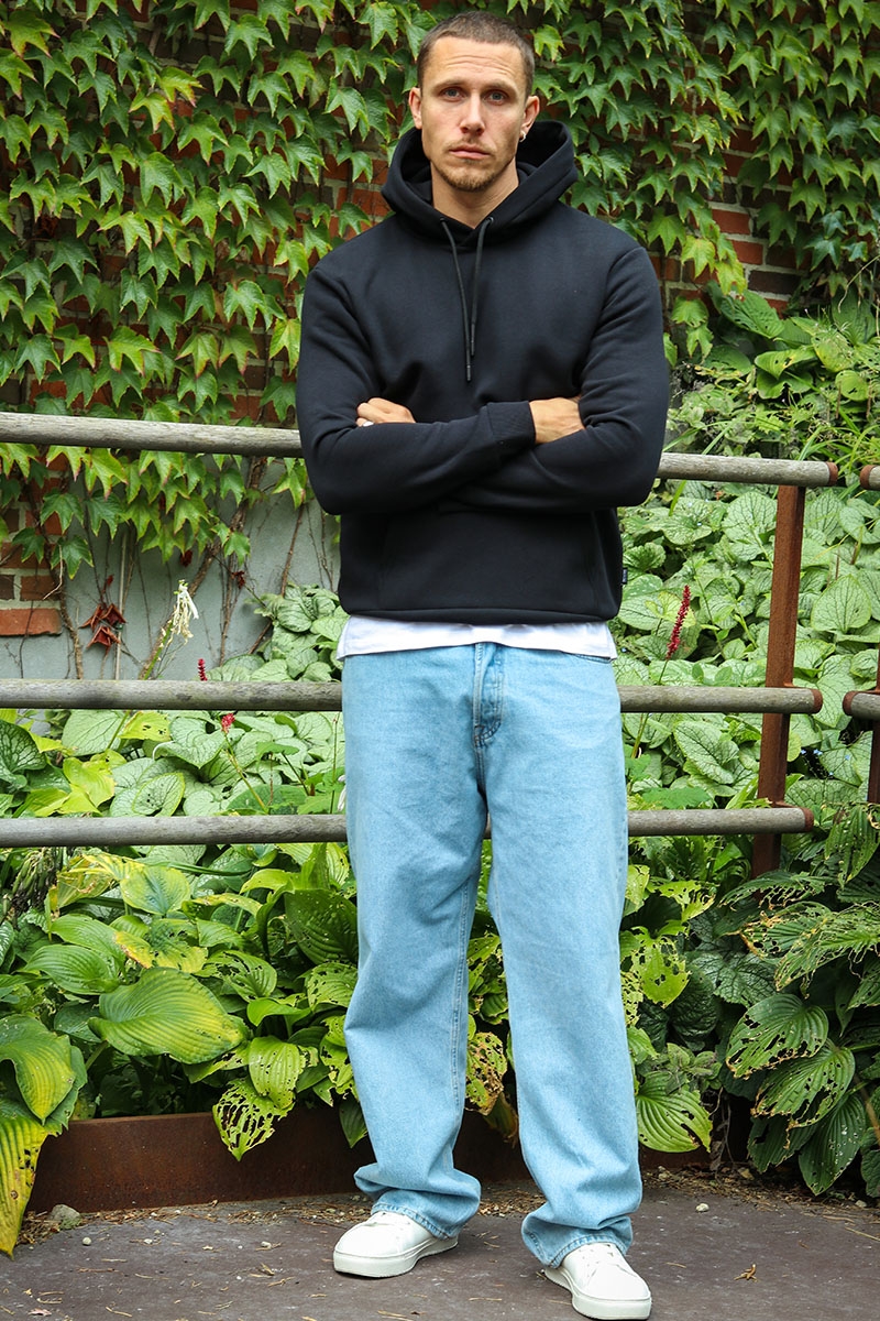 Modellen er 182 cm høj, vejer 80 kg, og bruger produktet i størrelse Large