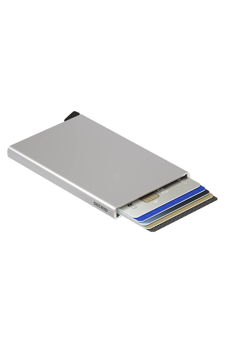 Secrid kortholder i en elegant sølvfarvet design. Kan opbevare op til fem kort, som hurtigt kan skubbes op så du nemt kan komme til dine kort. Beskytter mod slid og RFID scanning. Fremstillet i aluminium med et minimalistisk udtryk. Kortet måler: 10,2x6,3x0,8 cm og har en vægt på 40 g.