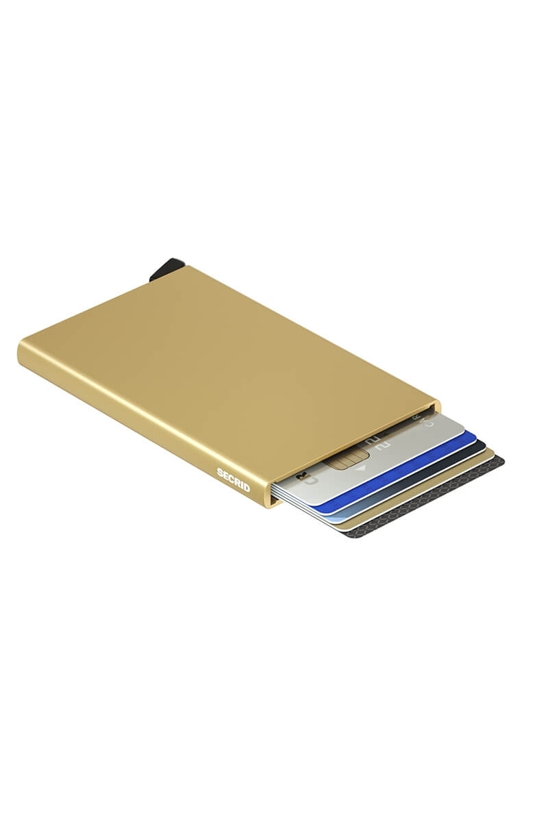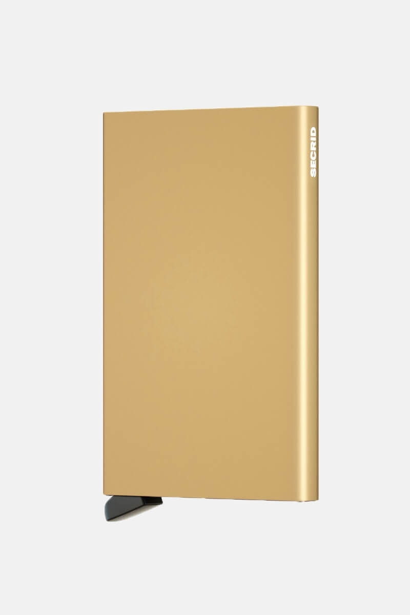 Secrid kortholder i en elegant guldfarvet design. Kan opbevare op til fem kort, som hurtigt kan skubbes op så du nemt kan komme til dine kort. Beskytter mod slid og RFID scanning. Fremstillet i aluminium med et minimalistisk udtryk. Kortet måler: 10,2x6,3x0,8 cm og har en vægt på 40 g.