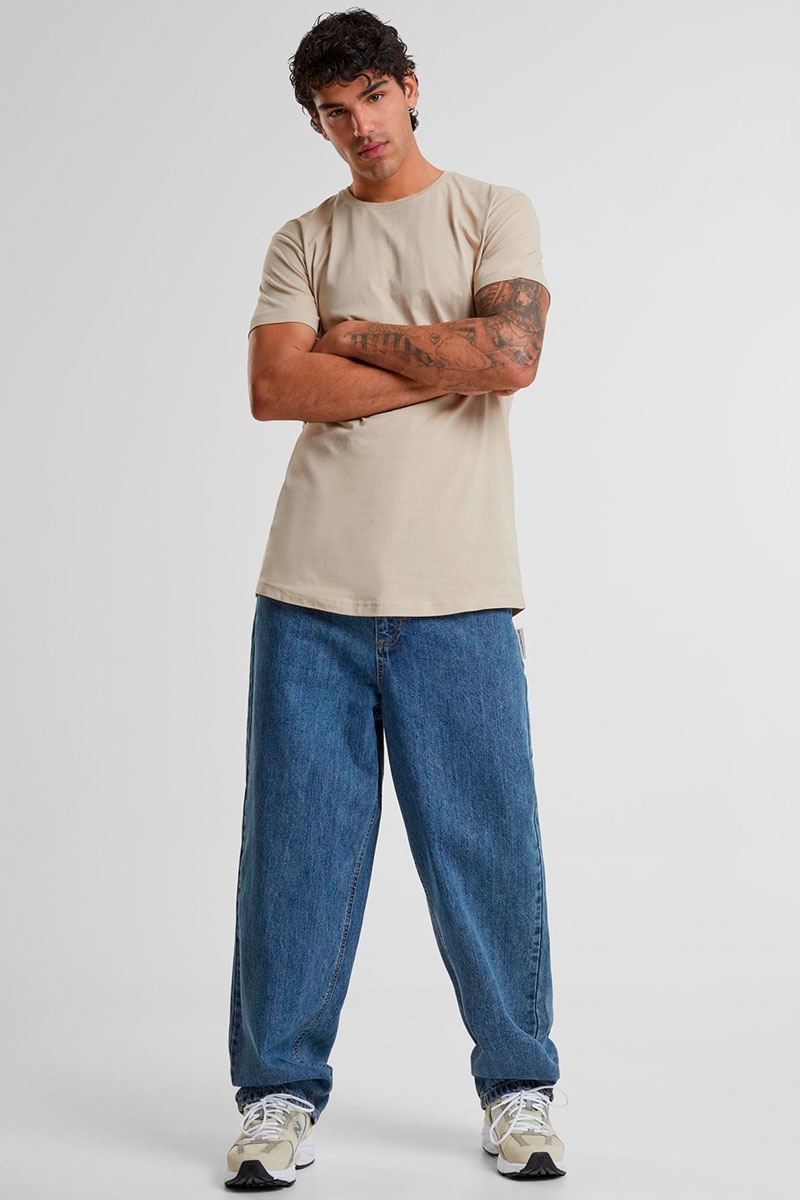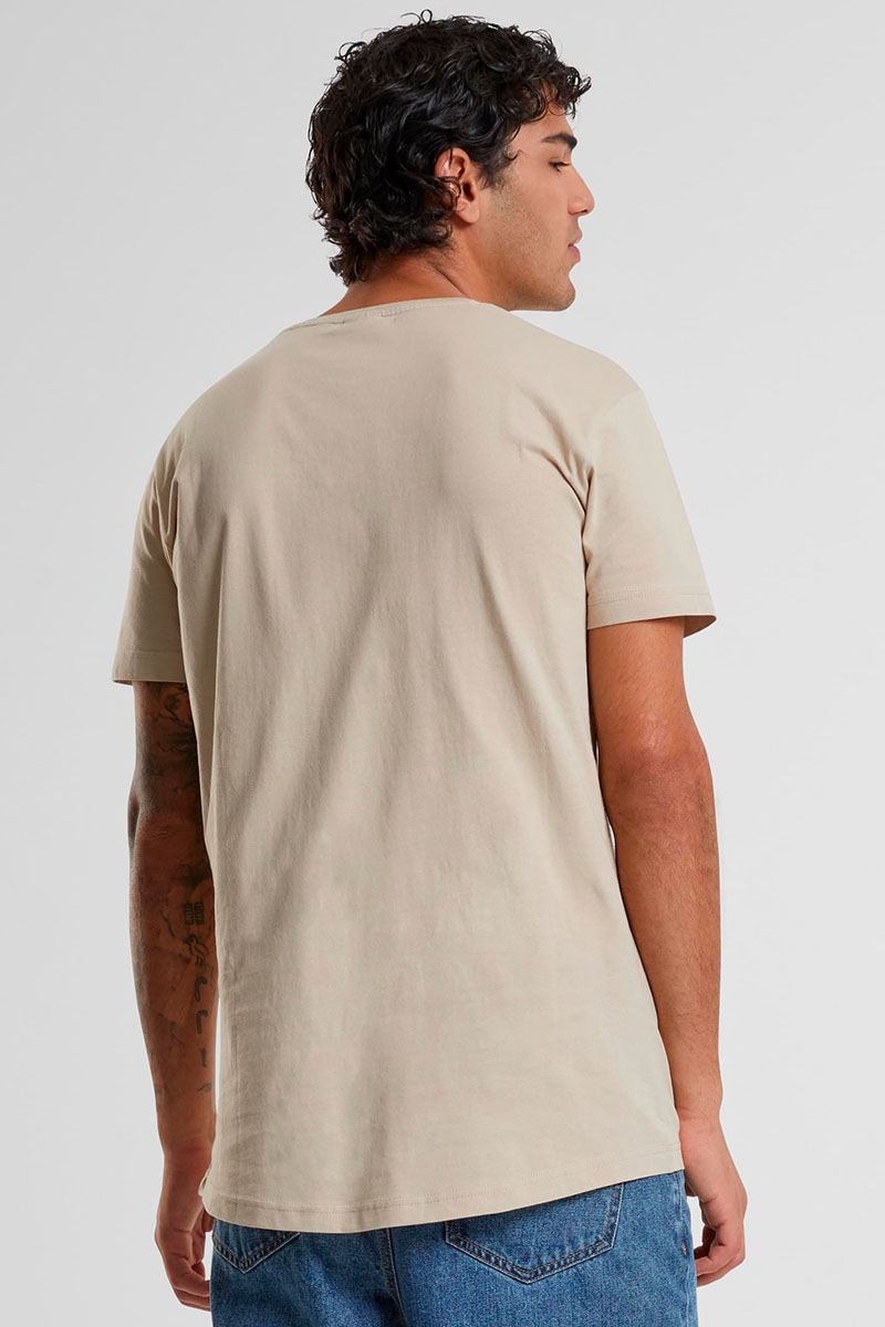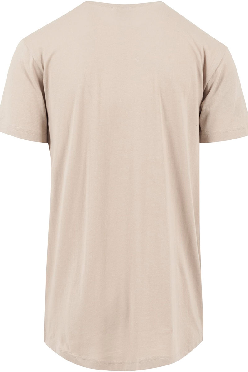 Urban Classics i farven sand, som er en cremefarvet variant og den har en lang længde. Der er mulighed for at brætte t-shirtens ærmer op. Teen buer svagt for neden.Kvaliteten på denne Urban Classics t-shirt er: 100% bomuld.