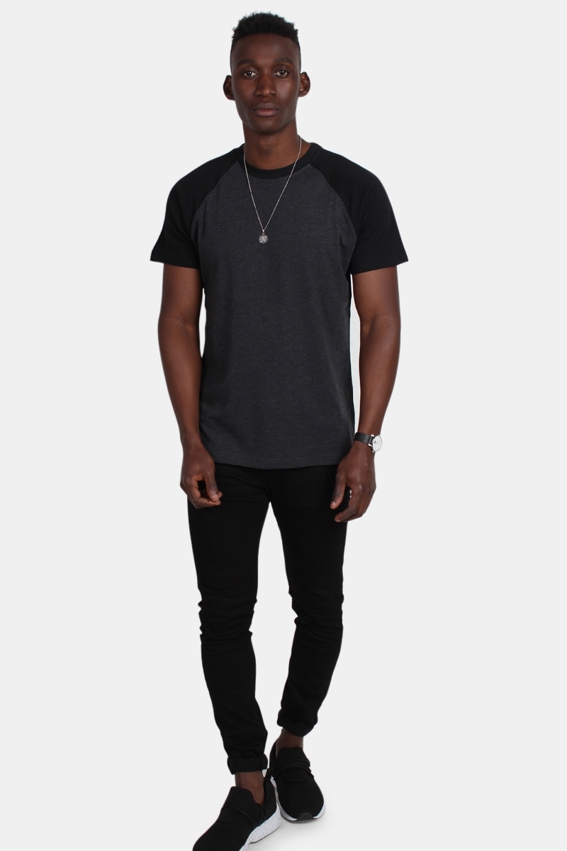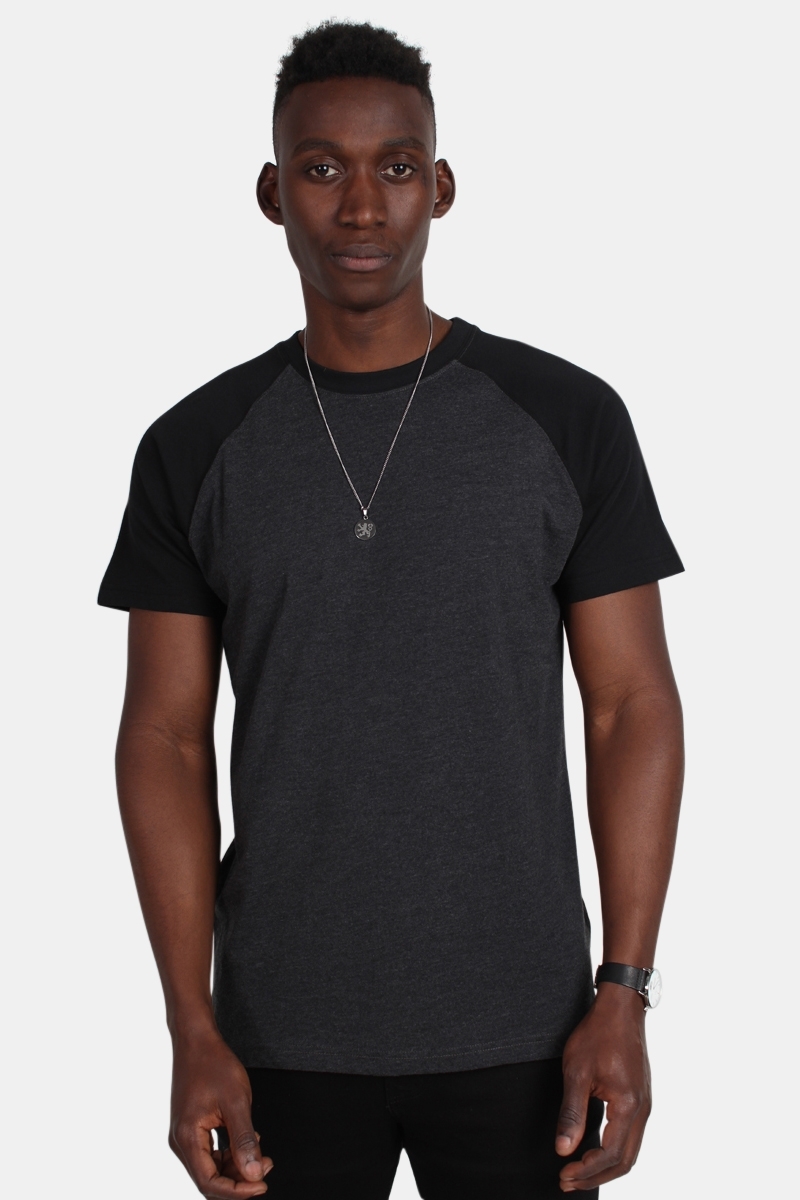 Mørkegrå med sorte ærmer Tee af Urban Classics. Ærmerne kan brættes op hvis ønsket. Kvaliteten på denne Urban Classics tee er 60% bomuld og 40% polyester.